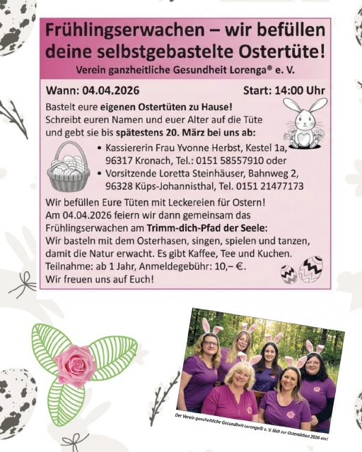 Sie sind hier: Startseite » Bilder 2026 » 04.04.2026 Osteraktion am Trimm Dich Pfad der Seele Bilder folgen...