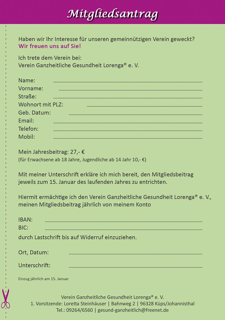 Ganz einfach hier ausdrucken, ausfüllen und an uns zurück